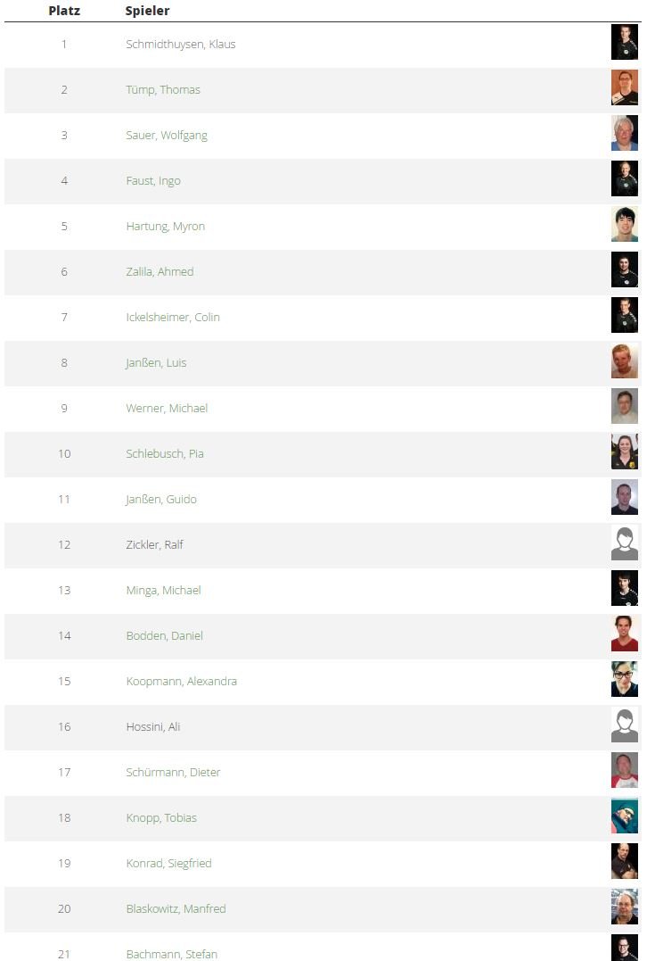 September 2018 Monster – Dyp Challenger Zum September M-Dyp am 14.09.18 kamen 21 Spieler zusammen. Am Ende gegen 00.00 Uhr gewann klaus Schmidthuysen das Turnier. Thomas Tümp belegte den 2. Platz und Wolfgang Sauer folgte auf Rang 3.