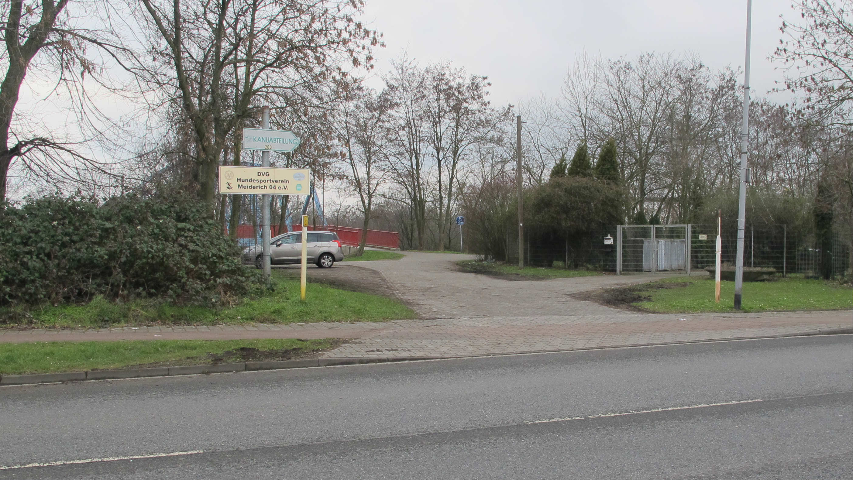 In die Einfahrt mit den Schildern "Kanuabteilung" und "DVG Hundesportverein Meiderich 04 e.V." fahren.
